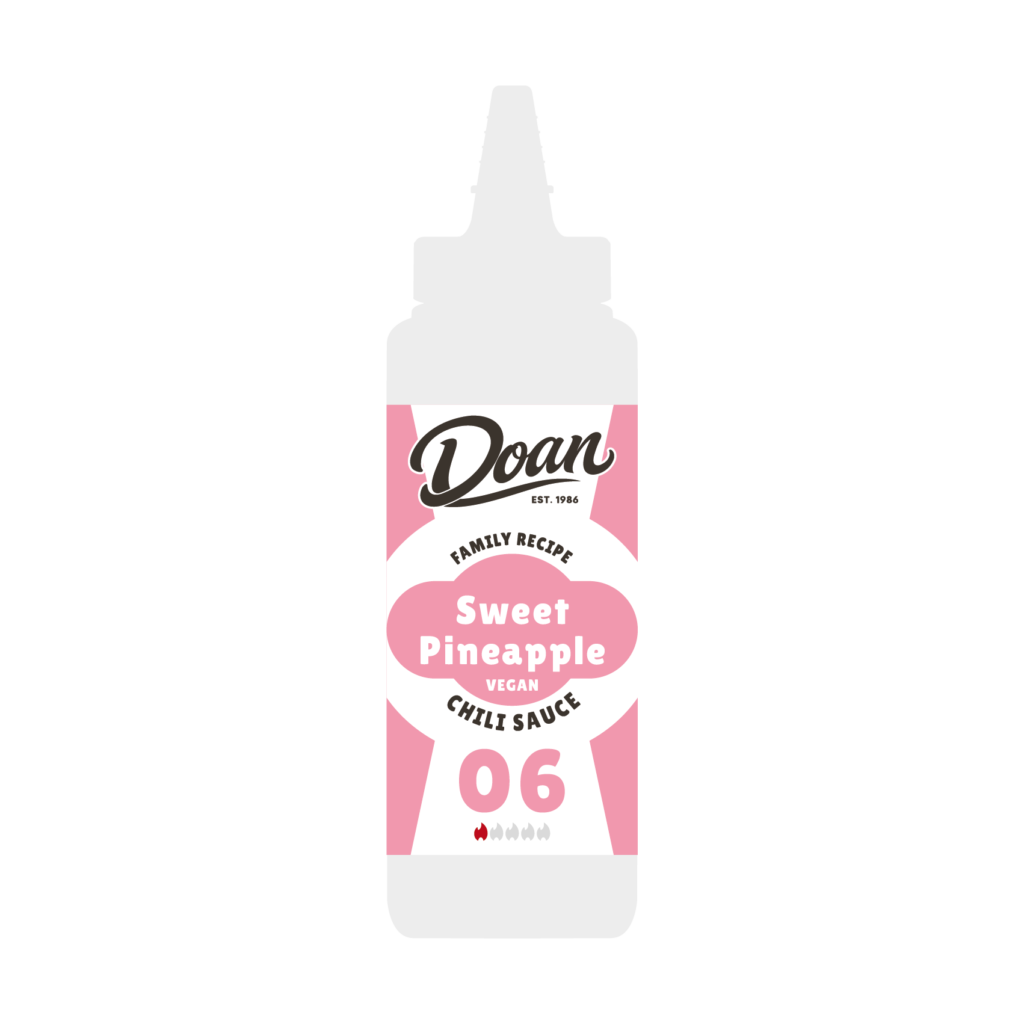 Doan’s Original (red chili pepper, tomato sauce, sugar, salt, spices), water, onion, carrot, vinegar, thickener (E415), preservatives (E202, E211), garlic, ginger.